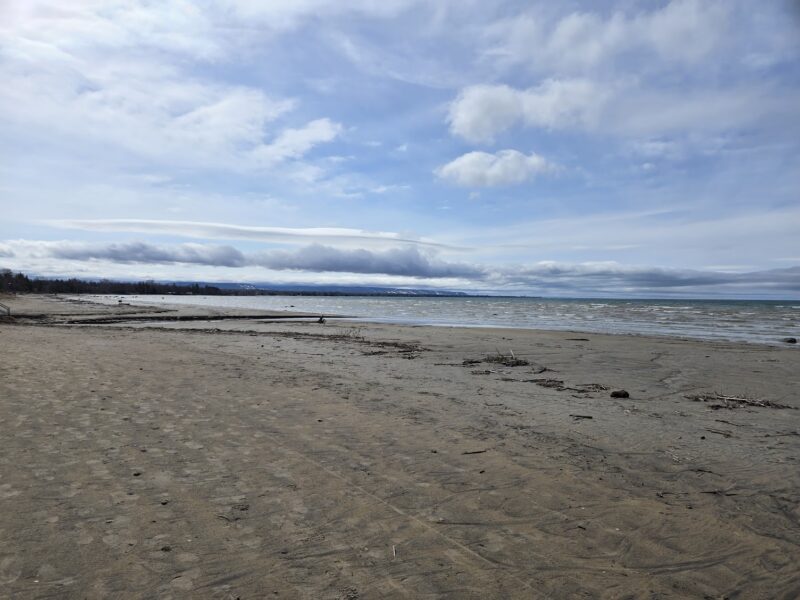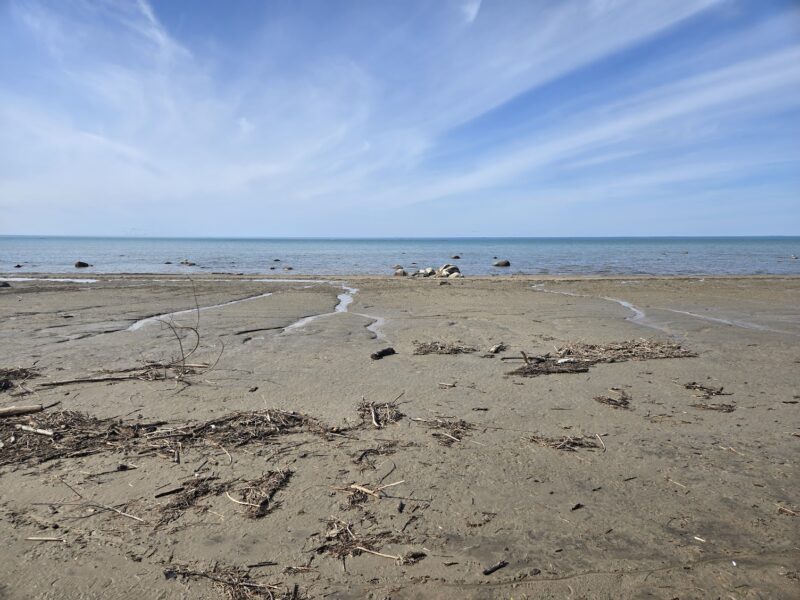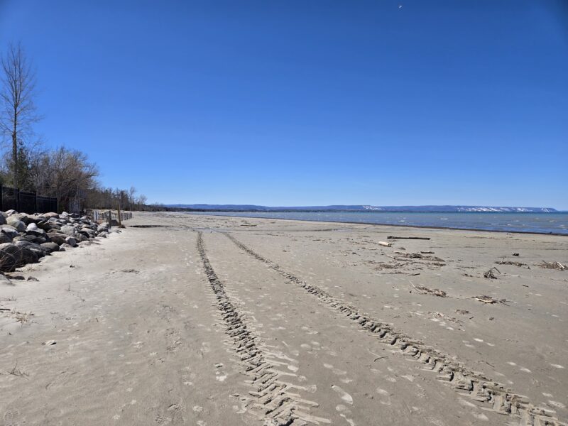 Sunday, April 13th, 2025—This picture was taken just east of my usual turnaround spot at 57th Street when I walk the west end of the beach. This part of the beach is still covered with debris. In a week or two, the town will begin cleaning up the beach as we get ready for the Victoria Day / May 2-4 weekend.Tuesday, April 15th, 2025 – This picture shows damage from the recent ice storm at the far east end of Shore Lane just west of 13th street. Looking north towards the water. The ginormous snow banks are still visible to the left of the picture.Tuesday, April 15th, 2025—The beach looked desolate on Tuesday morning. Throughout most of the Fall, Winter, and Spring, I have the beach to myself and rarely meet other people. I’m looking forward to summer and the beach being busy again.Wednesday, April 16th, 2025 – Looking across the Nottawasaga Bay toward the Blue Mountains from near 57 street. The beach is still littered with debris.Thursday, April 17th, 2025 – Looking west along the beach near 30th street. (between beach areas 4 and 5)Saturday, April 19th, 2025 – Looking west from near 57th street. The beach is still a mess, covered with debris from the winter months.