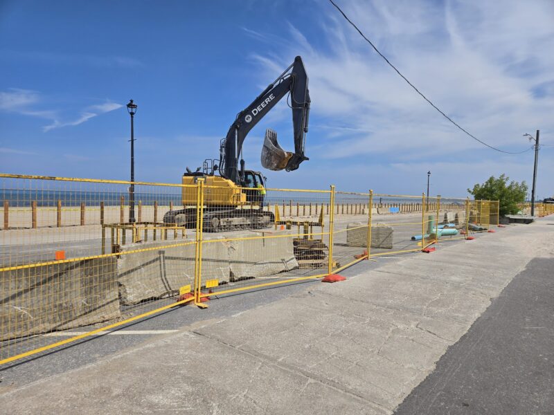 Friday, July 11th, 2025 – Construction efforts down at the main beach are accelerating. The roadway is now closed to both pedestrian and automobile traffic. Part of the redevelopment plan calls for elevation Beach Drive so that it is less susceptible to the flooding that happened a few years ago when the Great Lakes were near record high water levels.
