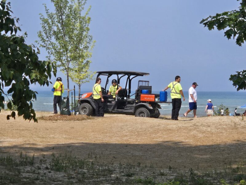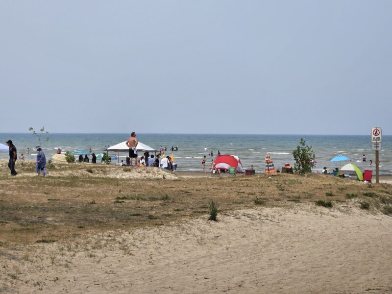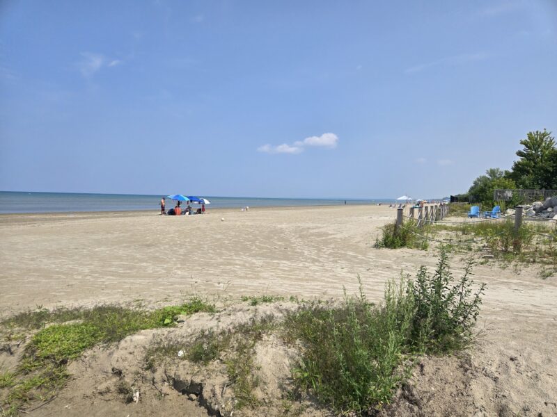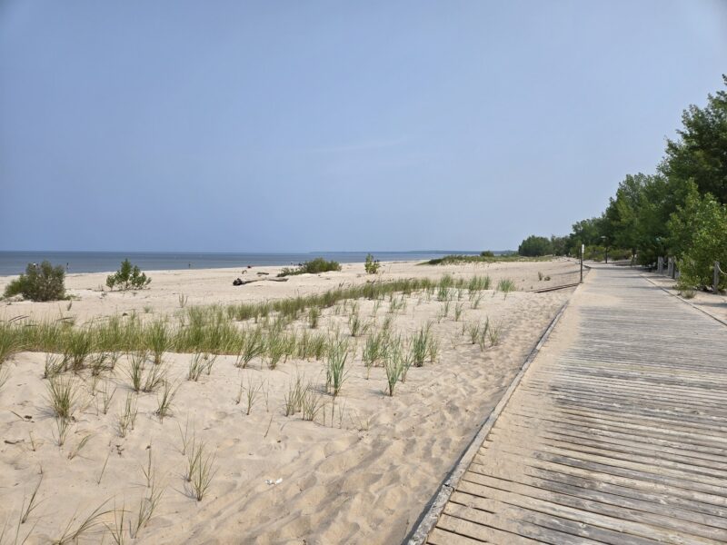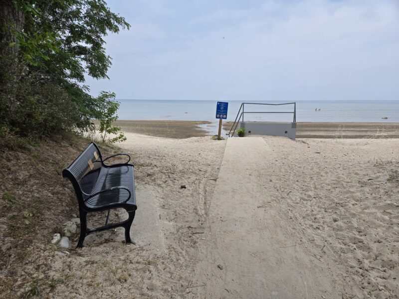 Sunday, August 3rd, 2025 – Looking towards the water at Beach Area 4 durving the Civic Holiday long weekend.Monday, August 4th, 2025 – I followed this high-wheel bicycle along Shore Lane just east of 30th street.Monday, August 4th, 2025 – Staff from the provincial park planting new trees at Beach area 5. Tuesday, August 5th, 2025 – Looking east along the boardwalk just east of the main beach.Wednesday, August 6th, 2025 – A memorial bench at 57th street, west of Beach area 6.Thursday, August 7th, 2025 – People enjoying the beach near 30th street in a residential area between Beach areas 4 and 5.Friday, August 8th, 2025 – Looking west along the beach from near 30th street.