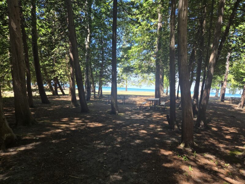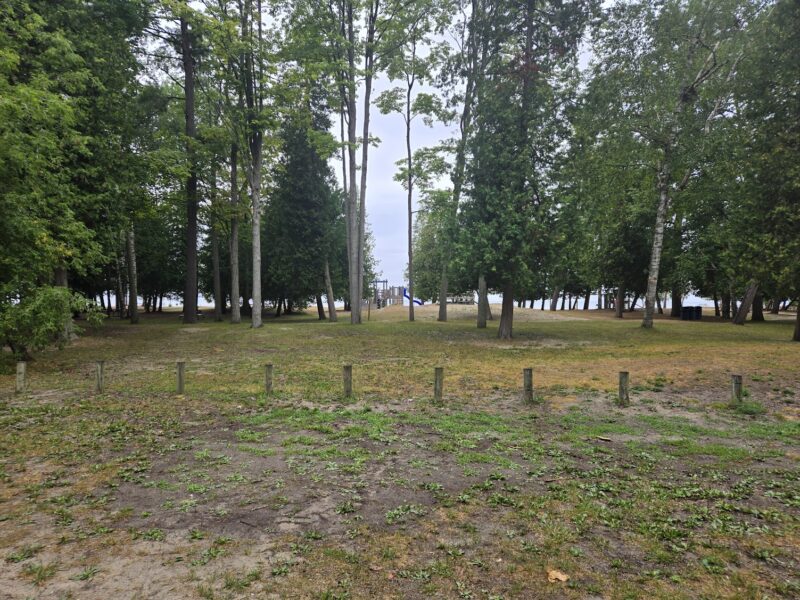 Tuesday, August 19, 2025 – Looking across the provincial park at Beach area 5 towards the play structure and the beach.