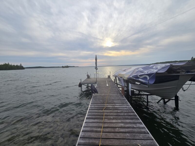 Friday, August 22, 2025 – The Alexander family’s dock – looking south from the north shore of Lake Manitou. Our family cottage was on the south shore, a few miles away facing north.