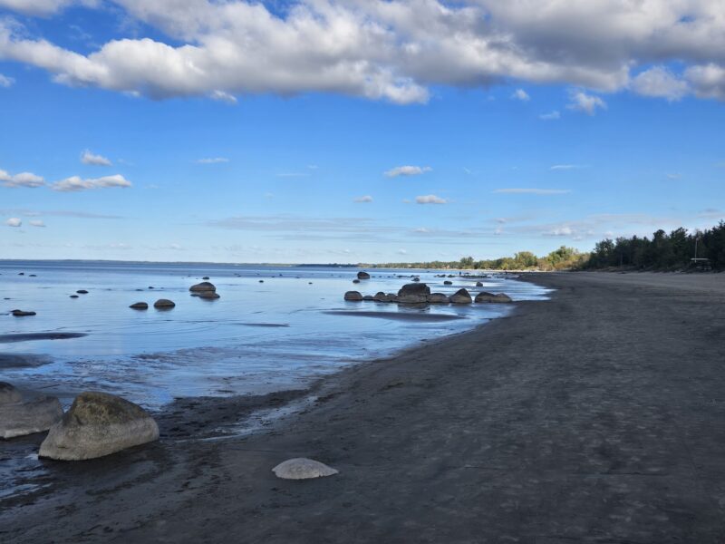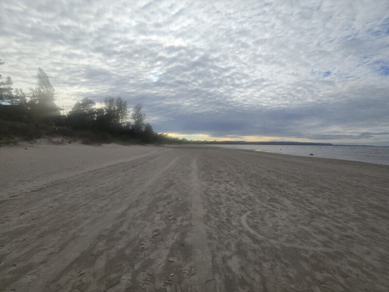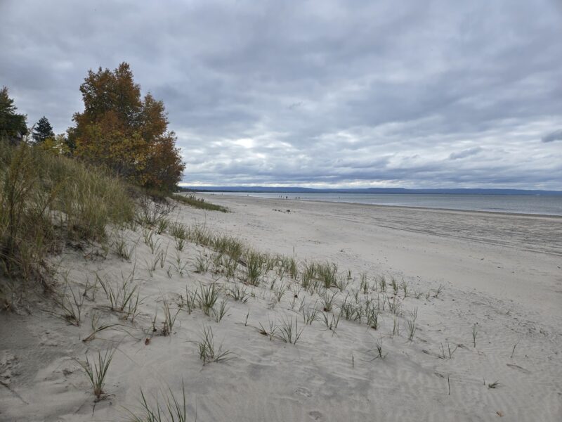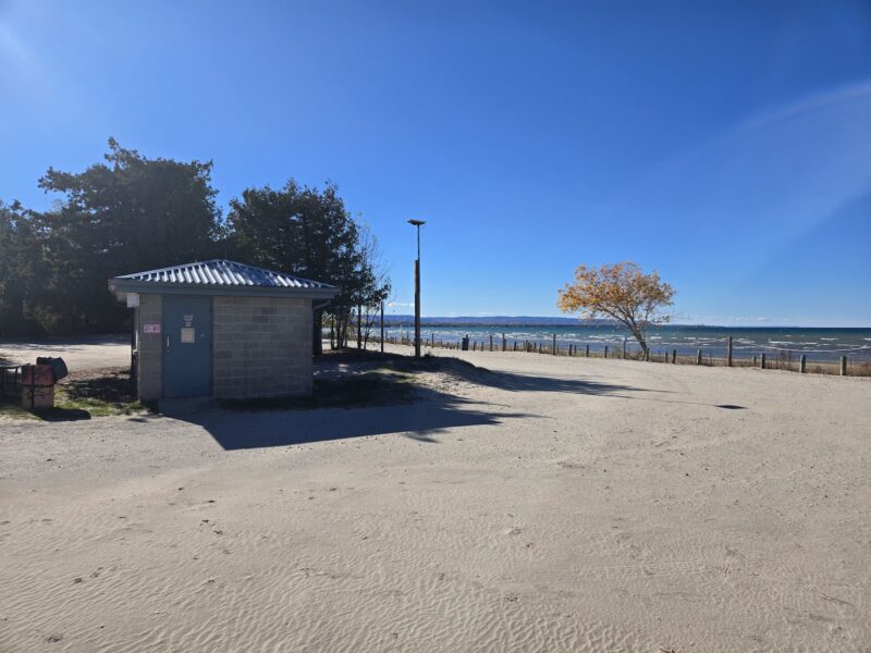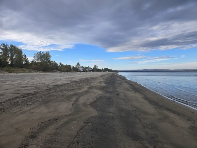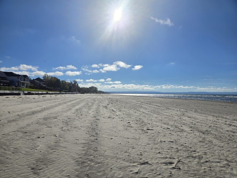 Sunday, October 12th, 2025 – Looking west along the sand dunes from near the small park just west of 13th street.Monday, October 13th, 2025 – This picture was taken at beach 6 with a southeast wind pushing the water offshore. It is sunny in the distance, but the west end of the beach is covered in clouds.Tuesday, October 14th, 2025 – Walking west along Beach Area 3 after turning around at the main beach.Wednesday, October 15th, 2025 – A patchwork sky looking west near Beach Area 6.Thursday, October 16th, 2025 -The parking attendant’s hut at Beach area 6 has been closed since Thanksgiving on Monday, October 13th.Friday, October 17th, 2025 – A play structure that I walk by nearly every day at Beach Area 5.Saturday, October 18th, 2025 – While it was calm on Saturday, this picture shows how high the waves have recently reached up the beach, disturbing the graded sand.