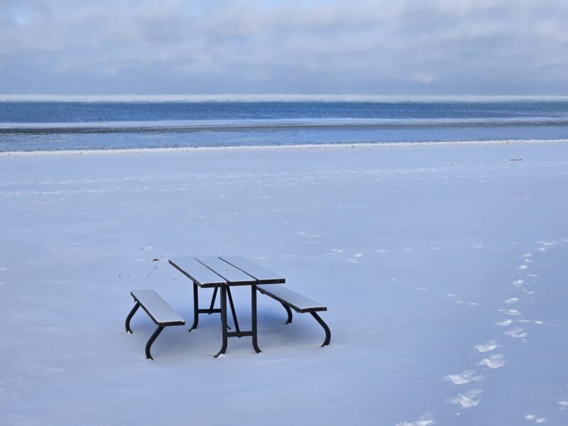 Tuesday, December 2nd, 2025 – After a cold night, you can see ice far out in the distance on Georgian Bay. Usually, the bay freezes from the shoreline out, with the shallow water freezing first.