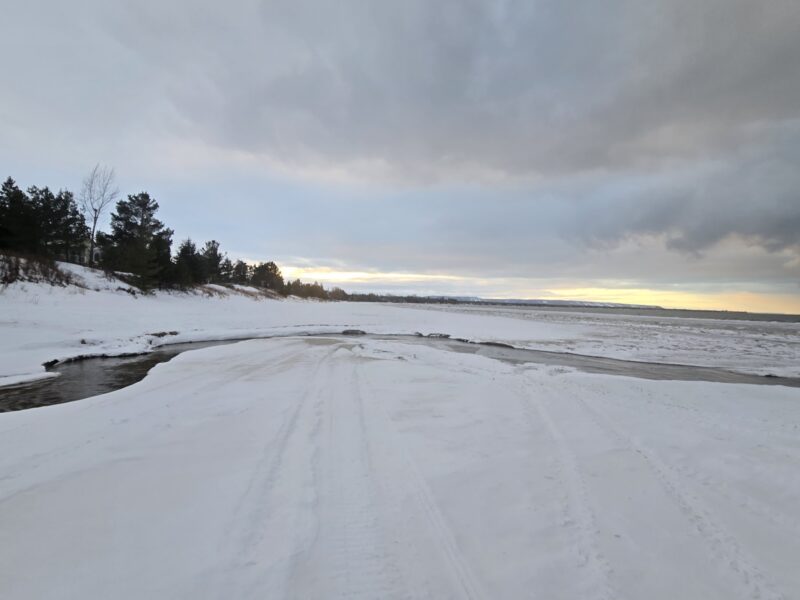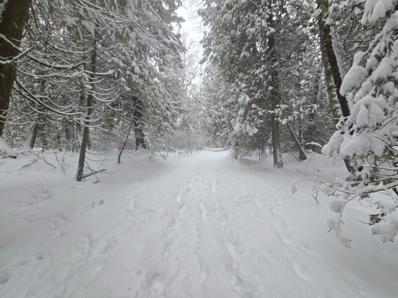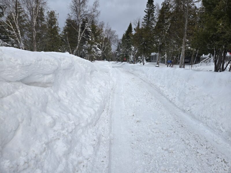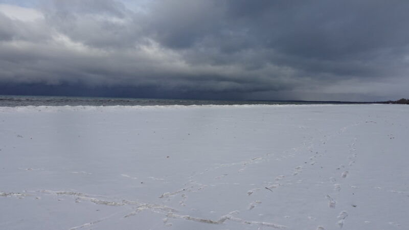 Sunday, December 7th, 2025 – Walking down the beach on Sunday afternoon. Snow squalls to the northeast across the Bay near Christian Island.Monday, December 8th, 2025 – The skies cleared on Monday afternoon. This picture taken looking west from near 57th street.Tuesday, December 9th, 2025 – With steady winds, beach area 5 was frozen and swept clear of snow. Perfect for walking down the beach! Strangely, around Beach 2 and 3, the snow is deep, and the beach is hard to get to, let alone walk on.Wednesday, December 10th, 2025 – Walking down the trail from the Recplex to Shore Lane on Wednesday afternoon after another snowfall.Thursday, December 11th, 2025 – The snow fell all day, faster than I could clear it. This picture was taken just after clearing the driveway for the second time, Thursday, December 11th, 2025 – We are running out of places to put the snow.Friday, December 12th, 2025 – Secondary roads like Shore Lane were hard to get down without a four-wheel drive. There was too much snow on the beach, so I walked down these tire ruts along Shore Lane instead.Friday, December 12th, 2025 – The ice at the Recplex outdoor rink is in great shape this year, with nights getting down into the minus teens.Saturday, December 13th, 2025 – By Saturday, the beach was walkable again with snowmobile trails up and down the full length of the beach.Saturday, December 13th, 2025 – The relatively warm water in Georgian Bay along with cold air temperatures is perfect for generating snow squalls.
