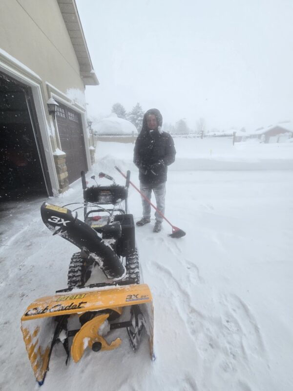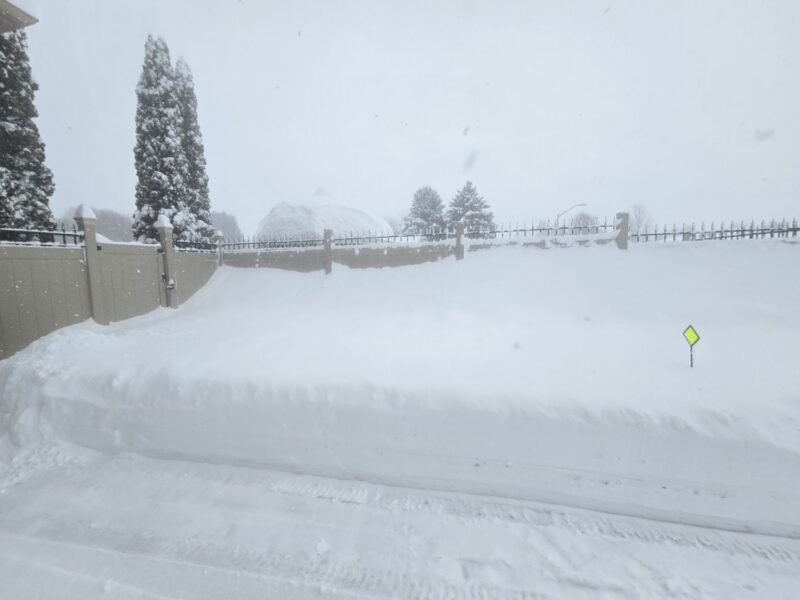 It’s not even winter yet, and the Georgian Bay lake-effect snow machine cranked up to 11 this week. Thursday’s snowfall was epic, with nearly 2 feet falling in a single day. The lake-effect snow band stalled right over our house despite clear skies in Stayner. I had to clear the driveway three times (20 cm each time) to keep up with new snow and the giant snow banks left by the snowplow. The cover picture of this post was taken early in the morning as the sun rose, looking north along Rigby Drive. This picture could almost be a postcard.