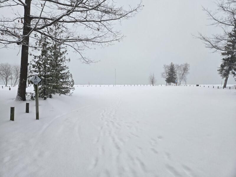 Saturday, January 3rd, 2026 – Walking along Shore Lane near Beach Area 5 on a snowy Saturday morning.