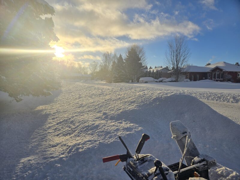 Thursday, January 01, 2026 – Looking Southeast while clearing our driveway. It was nice to see the sun for a change, even if it was for less than an hour!