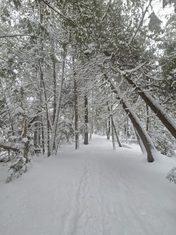 Thursday, January 01, 2026 – Walking down the trail from the RecPlex towards Shore Lane following Fresh snow overnight.