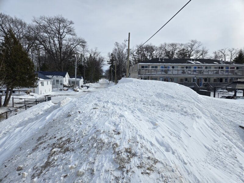 Sunday, February 8th, 2026 – This is another property east of 16th where there has been no effort to clear the driveway. The street-facing side of the cottage is visible, but the beach-facing side is buried in snow.