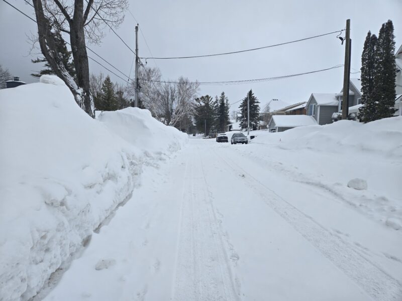 Monday, February 9th, 2026 – I took this picture looking south at 29th street, standing on top of a mound of snow created by plows. The snowbank is easily 12 feet tall.