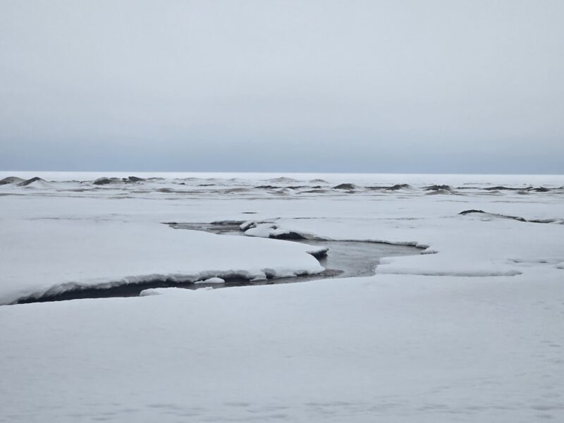 Friday, March 6th, 2026 – the stream at 57th street is making its way to the water. Georgian Bay is still frozen in the distance.