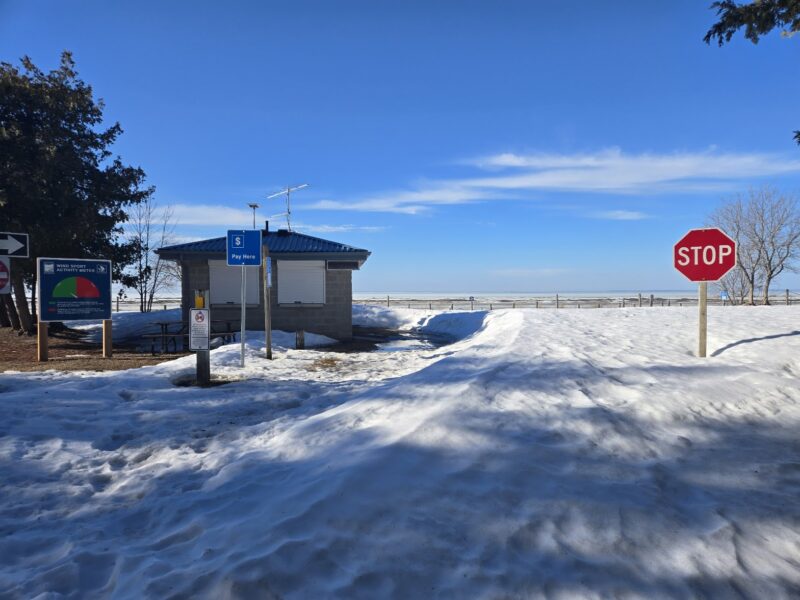 Monday, March 9th, 2026 – The entrance to the parking lot at Beach Area 6. The snow has finally melted enough to enter the beach from this point.