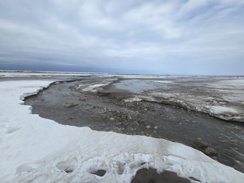 Tuesday, March 10th, 2026 – Meltwater running down the beach near 57th street.