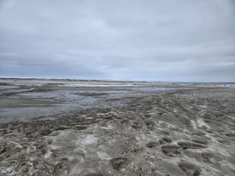 Thursday, March 12th, 2026 – I started walking down the beach again instead of Shore Lane, but as this picture shows, there is lots of slush and mud to deal with.