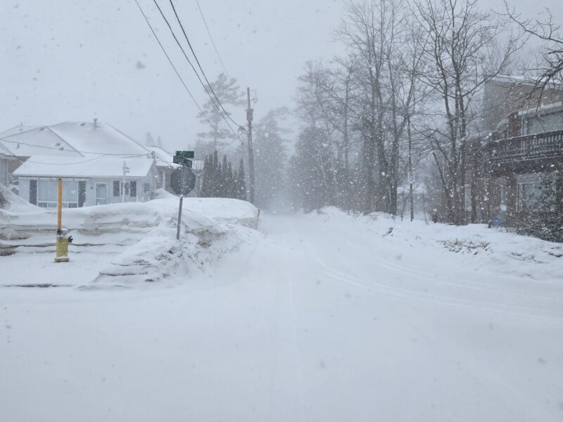 Friday, March 13th, 2026 – Heading west on Shore Lane towards Beach area 5 on a snowy Friday afternoon. To the left of the picture, you can see where a fire hydrant has been dug out of the snow for safety reasons.