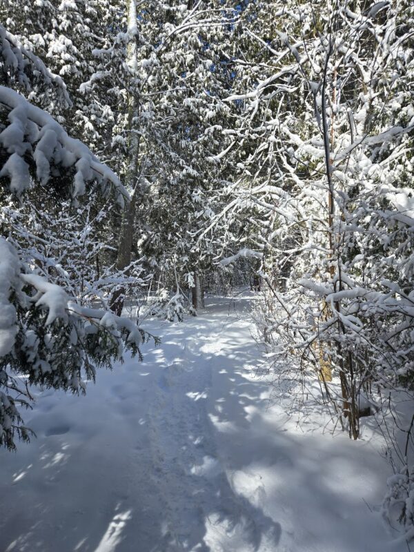 Saturday, March 14th, 2026 – The snow was deep on Saturday, but it was a beautiful walk from the Recplex to Shore Lane along a trail through the woods.